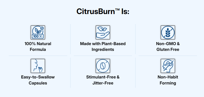 Citrus Burn is formulated using natural, non-stimulant ingredients and is considered safe for daily use by healthy adults. It does not contain harmful chemicals or addictive substances.
